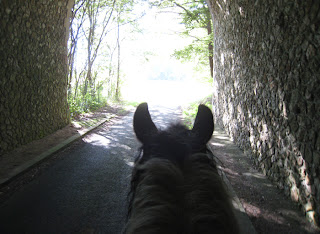 Nous sommes repartis à pieds le temps de traverser un pont très fréquenté, au trot tous les 2... Puis je me suis remise à cheval ^^